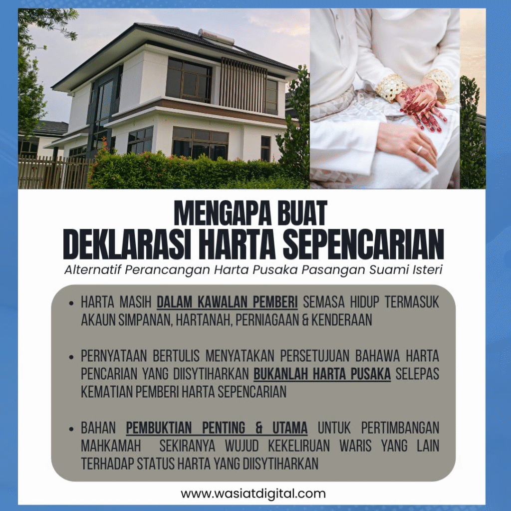 DEKLARASI Harta Sepencarian – alternatif rancang harta pusaka pasangan suami isteri.